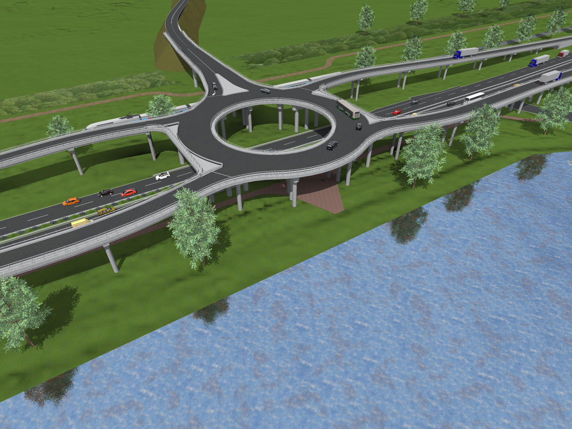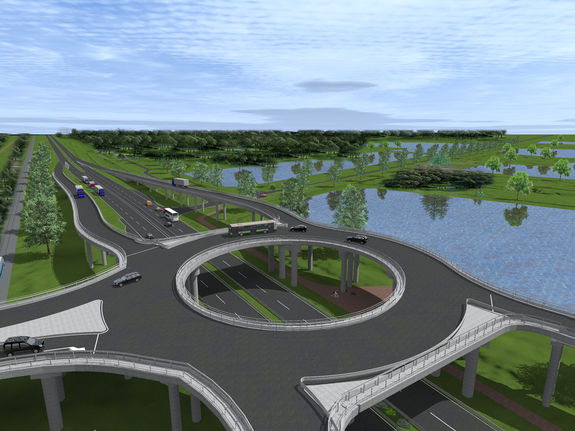 Circular bridge as bypass end node at Hódmezővásárhely, Hungary, along Highway no. 47