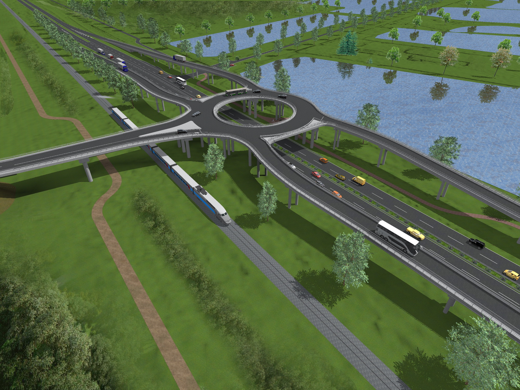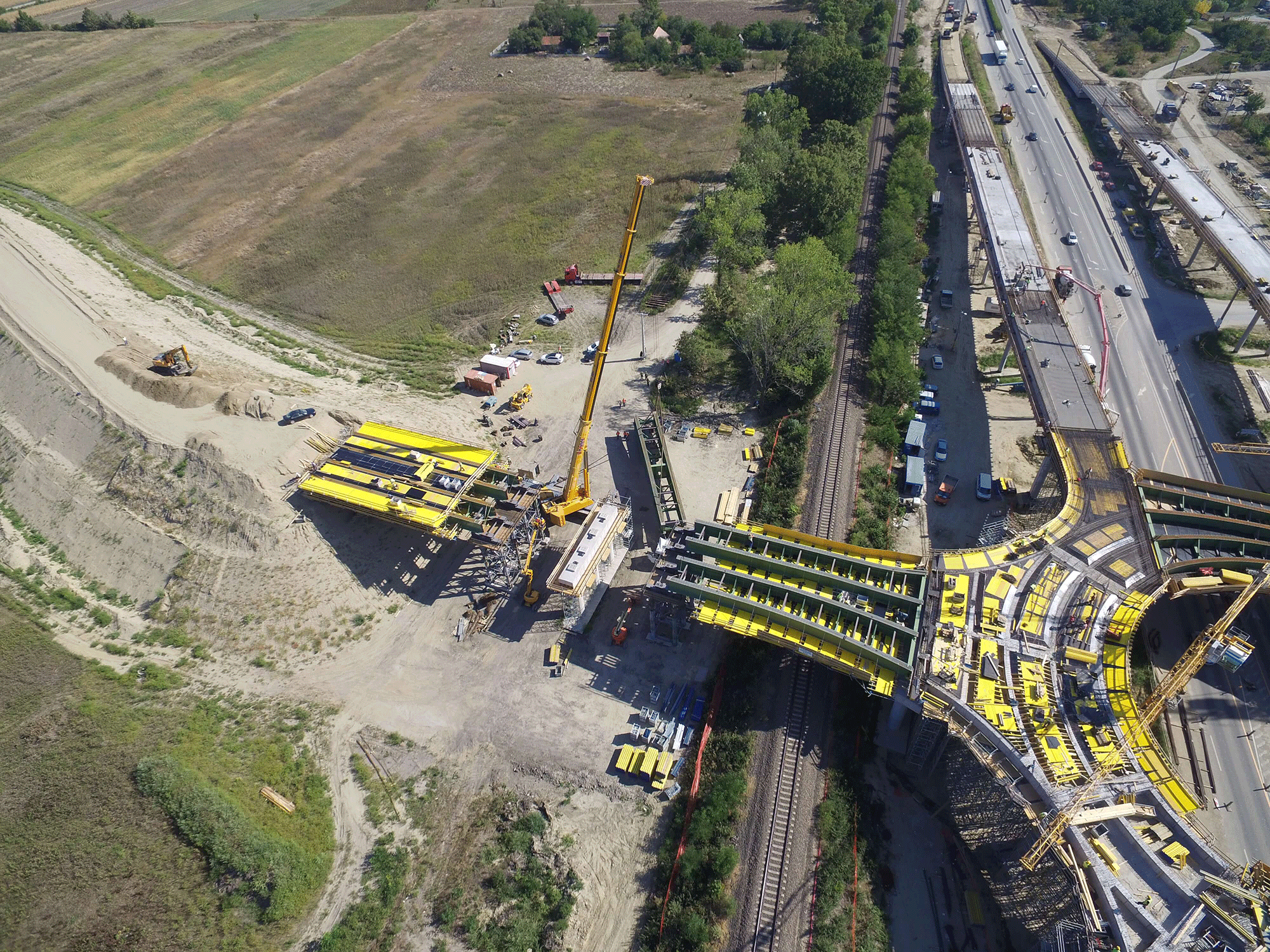 End node structure on the bypass at Hódmezővásárhely, Hungary along Highway no. 47, including the construction of a railroad overpass and a grade-separated junction with former Road no. 47. Design of a roundabout overpass over former road no. 47 with a view to on-site features.