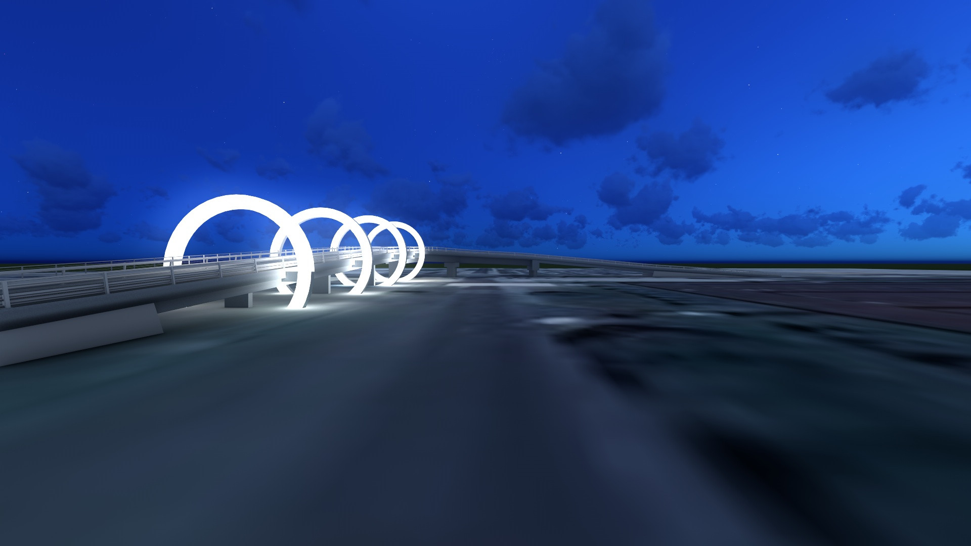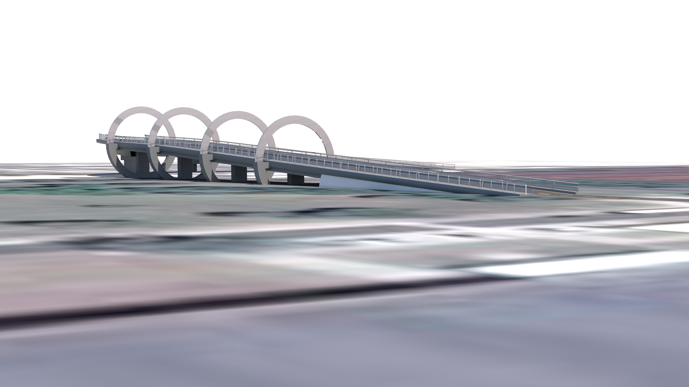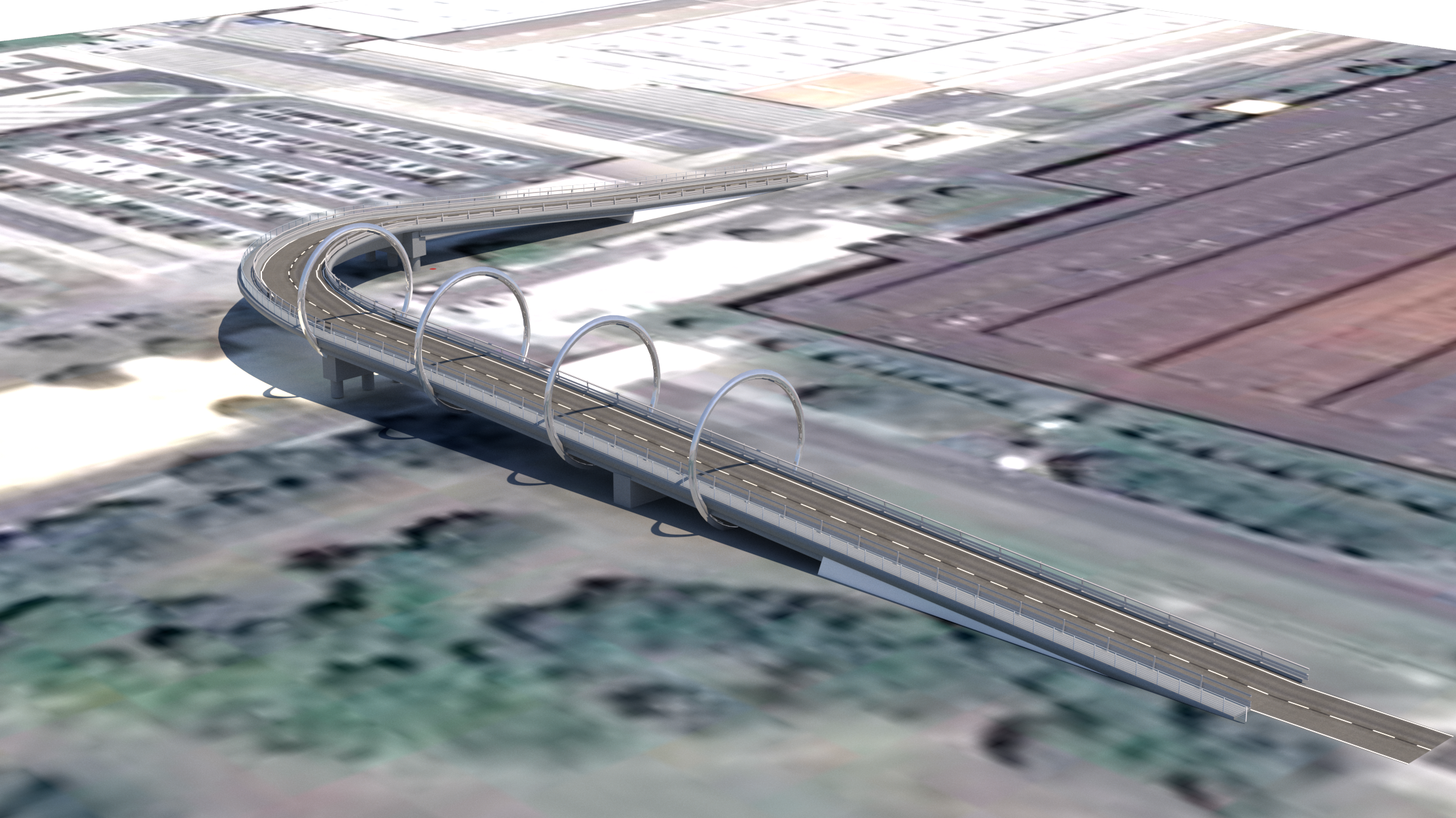 For road routing restrictions, precast beam structures have been designed to serve as access and exit bridges and a steel composite superstructure to be installed at the section with radius R = 45 m. A visualization design has also been prepared along with the bridge designs.