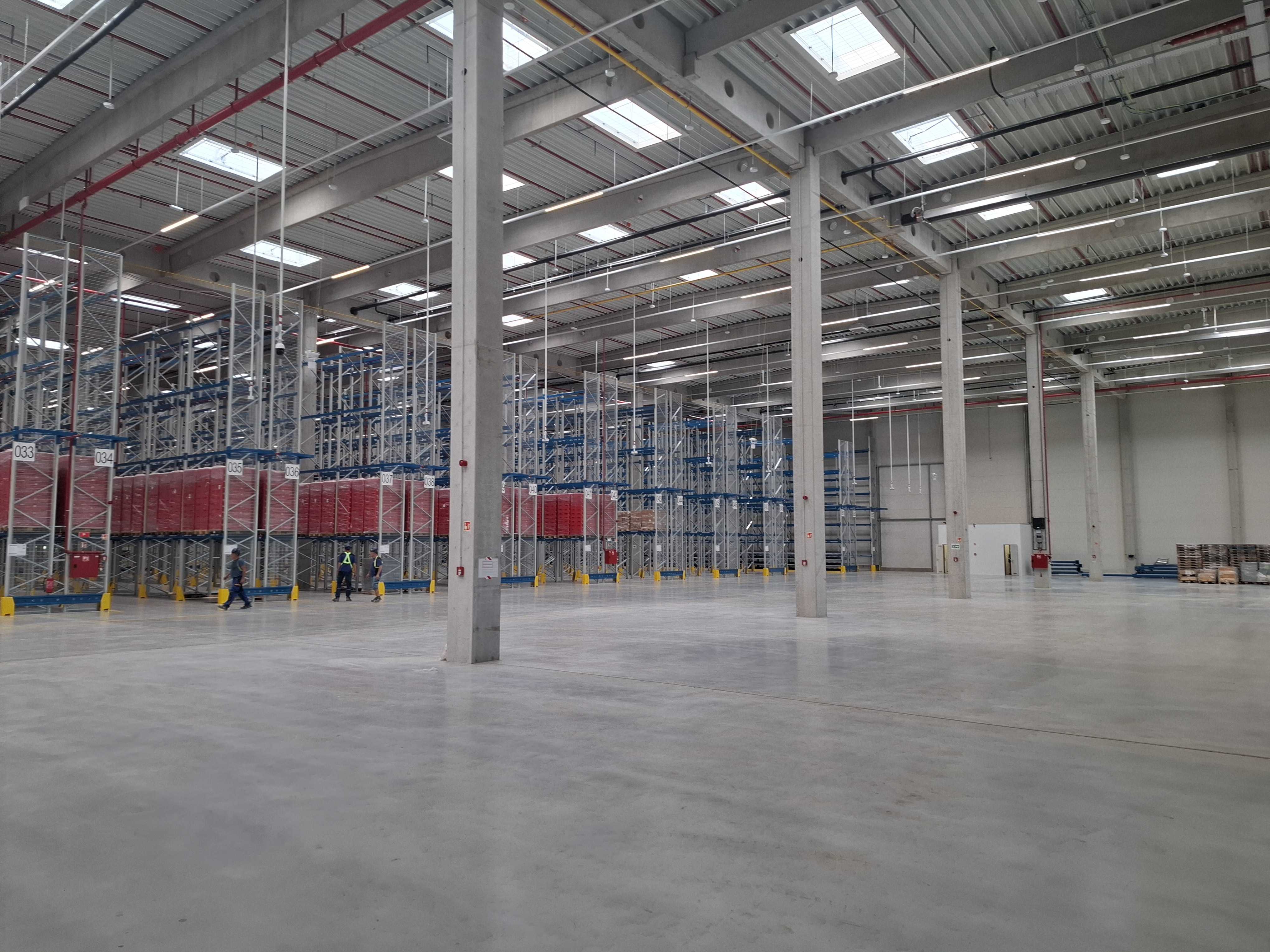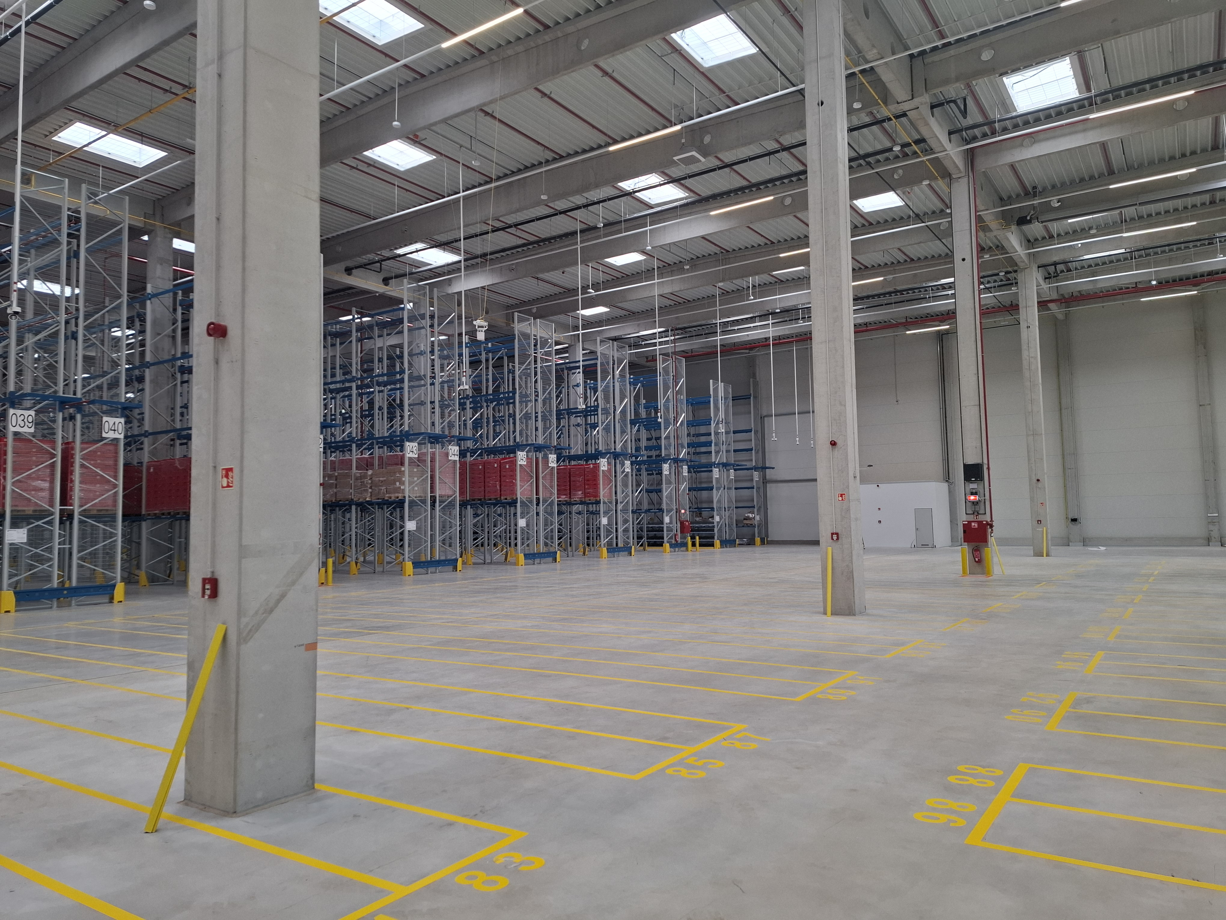 The nearly 40,000 m² distribution center incorporates outstanding technological solutions, including an ongoing BREEAM “Very Good” certification process, an approximately 280 kWp rooftop photovoltaic system, a 47% green area ratio, more than 27,000 sprinkler heads, and a firefighting water capacity of 3,600 m³, ensuring safe and sustainable operation.