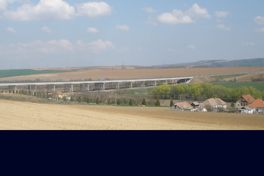 General design of 22 engineering structures along Motorway M60, section between Bóly and Pécs, total surface of 30,516 m², width ranging from 8.63 to 38.80 m, monolithic hollow, monolithic frame, steel frame and precast bridge girder superstructure bridges.