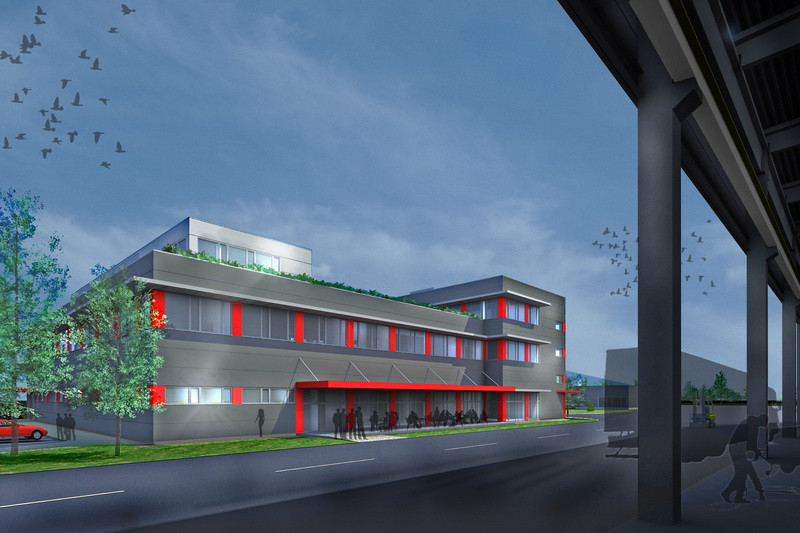 The design task was to establish a building complex for crane production with all the necessary service buildings, offices and sanitary buildings including infrastructure within the planning area. Buildings were designed primarily to incorporate technological solutions provided by the client. Facilities completed in the 1st Phase are: production hall, assembly plant, office and locker room building, energy centre, reception and waste storage building.