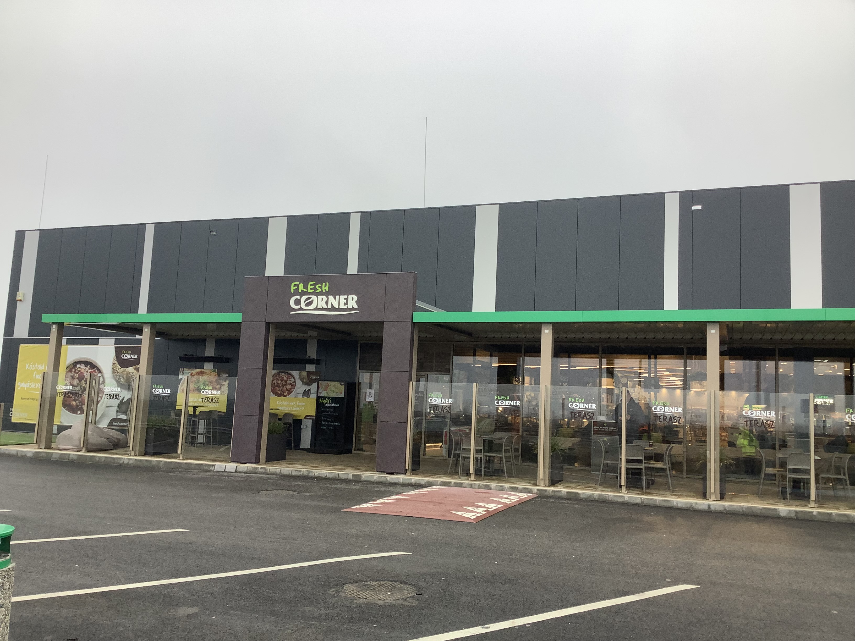 MOL fuel station and catering facility established at the Szent Gellért rest area on the right side of the M43 motorway at km 49 (Magyarcsanád) (10 fuel pumps; shop, café, and restaurant; 2 bus parking spaces, 60 parking spaces).