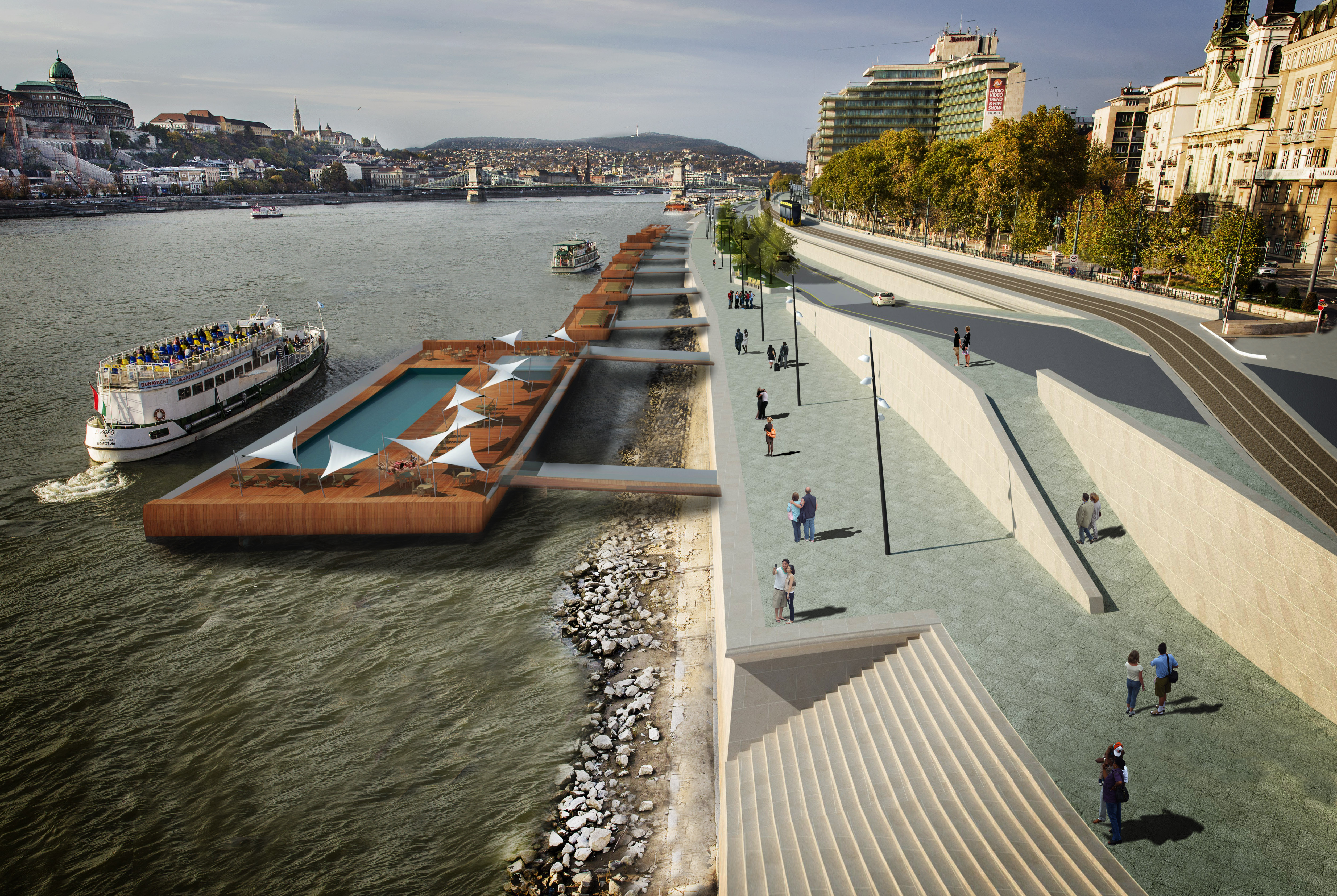 RAK-PARK Architectural tender for the entire reconstruction of the Pest-side bank of the Danube between Kossuth Square and Fővám Square. Tender applicants were required to present urban- and open space architectural design recommendations for the pertinent bank segment to rebuild the public areas and to design a system of public-purpose floating platforms and structures to be installed on the parallel water surfaces. Based on the jury’s decision, the application submitted by CÉH Ltd. was successful.