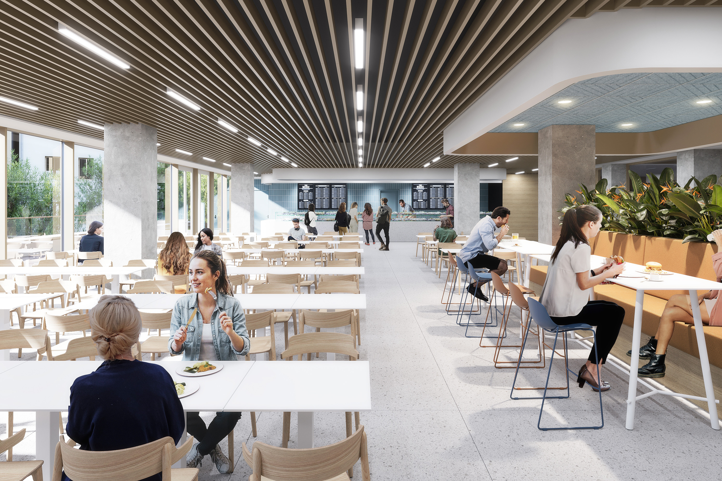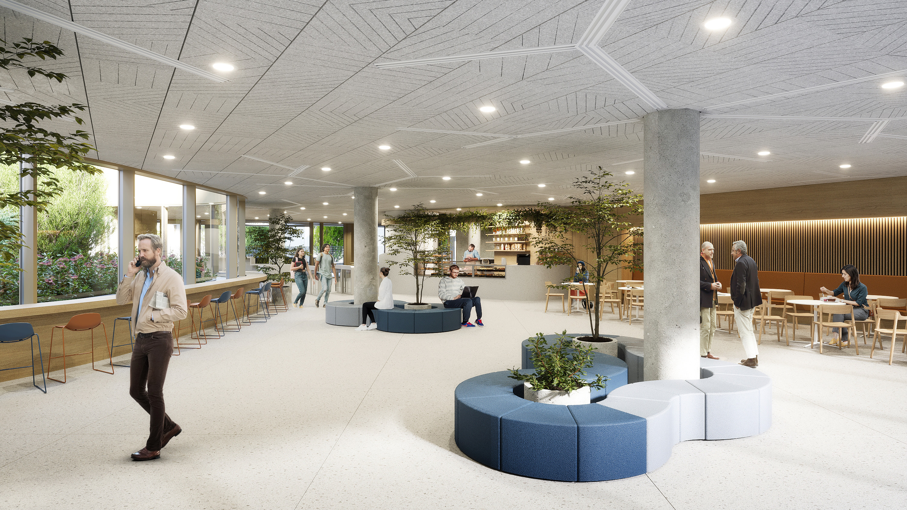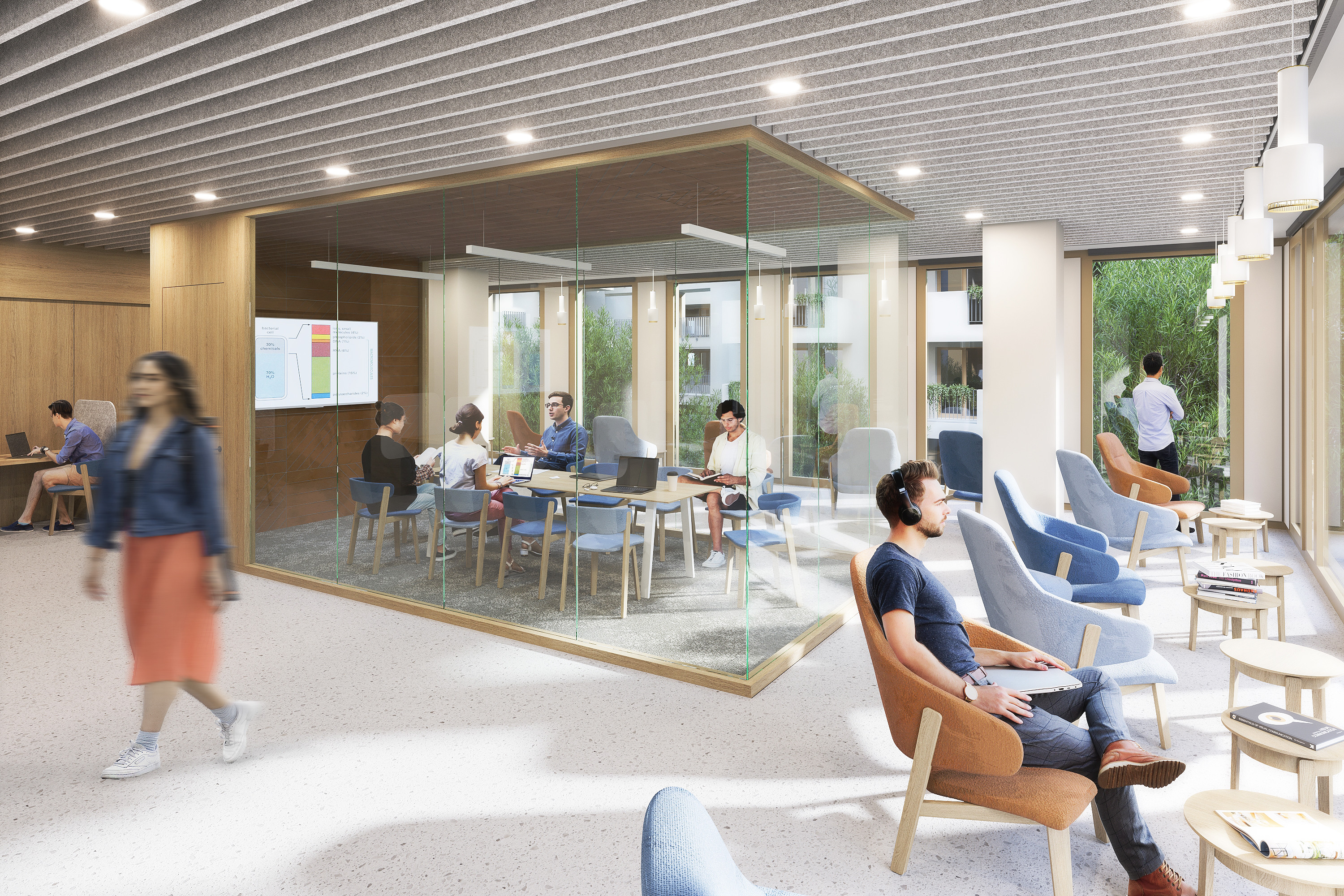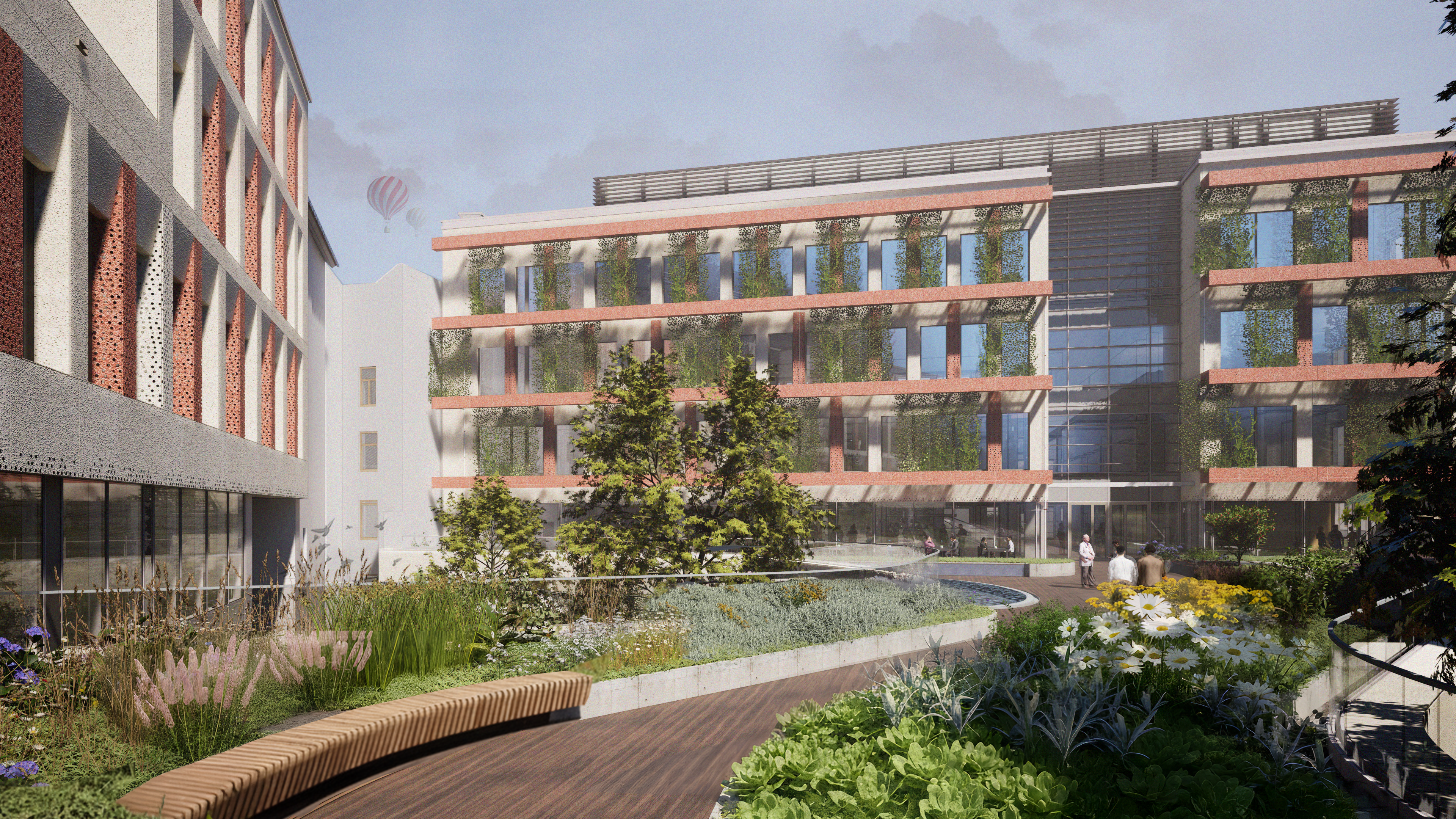 During the project, 4 buildings will be constructed with laboratories, offices, student and educational spaces, a library, research workshops, and other functional spaces. Between the buildings, an open green area functioning as a community space will be created on two levels, which will also be open to the public. Parking needs and logistical services will be provided by a three-level underground garage.