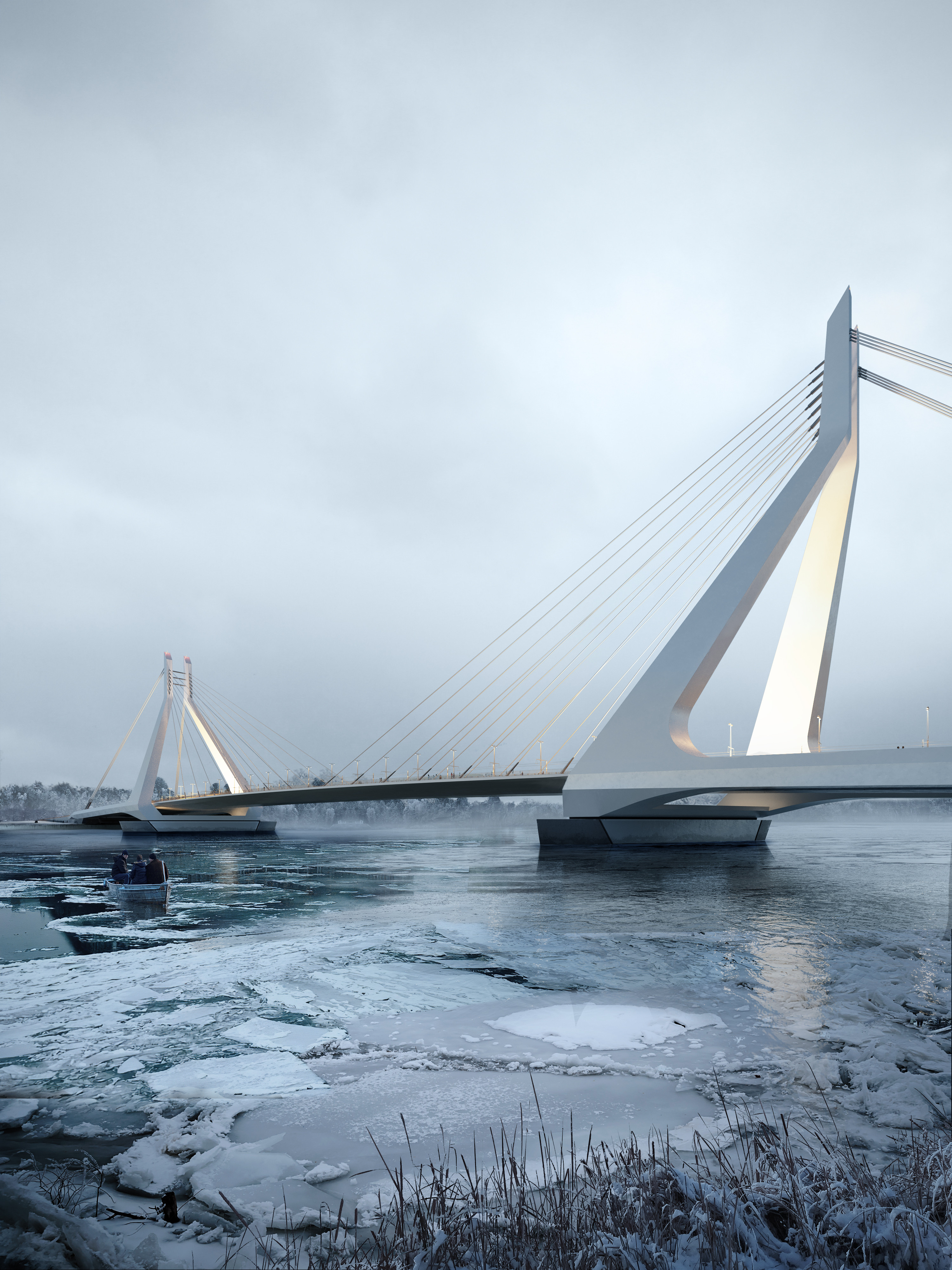 The prelude to the design project was the international design tender conducted by KKBK Zrt. in 2017 and 2018 which was won by the two-pylon cable stayed bridge submission of the Dutch architect company UN Studio and their English bridge engineering partner called Buro Happold Ltd.